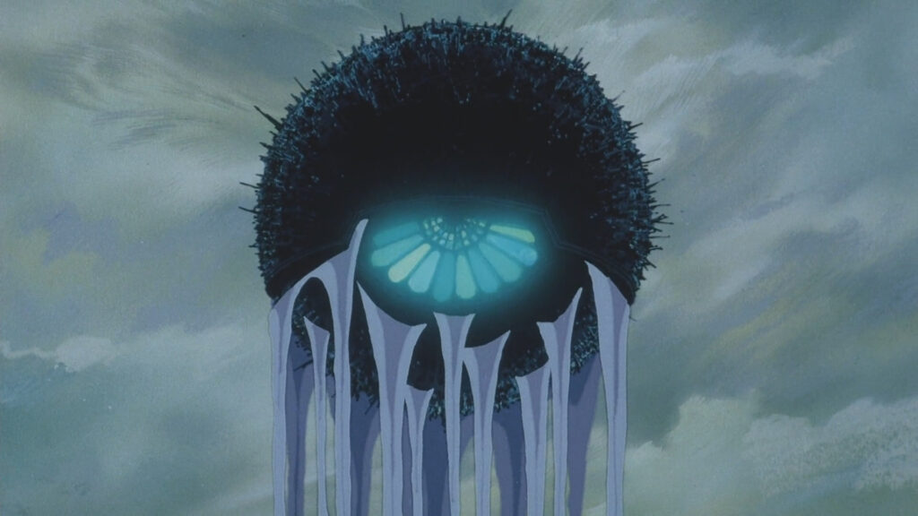 La séquence finale concentre les difficultés interprétatives. Après la destruction de l’œuf, la fille tombe dans l’eau et son souffle produit des dizaines de nouveaux œufs qui s’élèvent vers la surface. Elle réapparaît ensuite, pétrifiée, assise sur un trône parmi d’autres statues humaines, à bord de ce qui se révèle être la coque renversée d’un navire. Oshii a déclaré que cette fin constituait un dénouement « avec salut » pour la fille, mais qu’il avait délibérément refusé de le présenter de manière lisible. La multiplication des œufs peut être lue comme une régénération — la foi détruite engendre, dans sa destruction même, de nouvelles possibilités de croyance. Mais elle peut tout aussi bien signifier une prolifération sans contenu : davantage d’œufs, pas davantage de certitude.