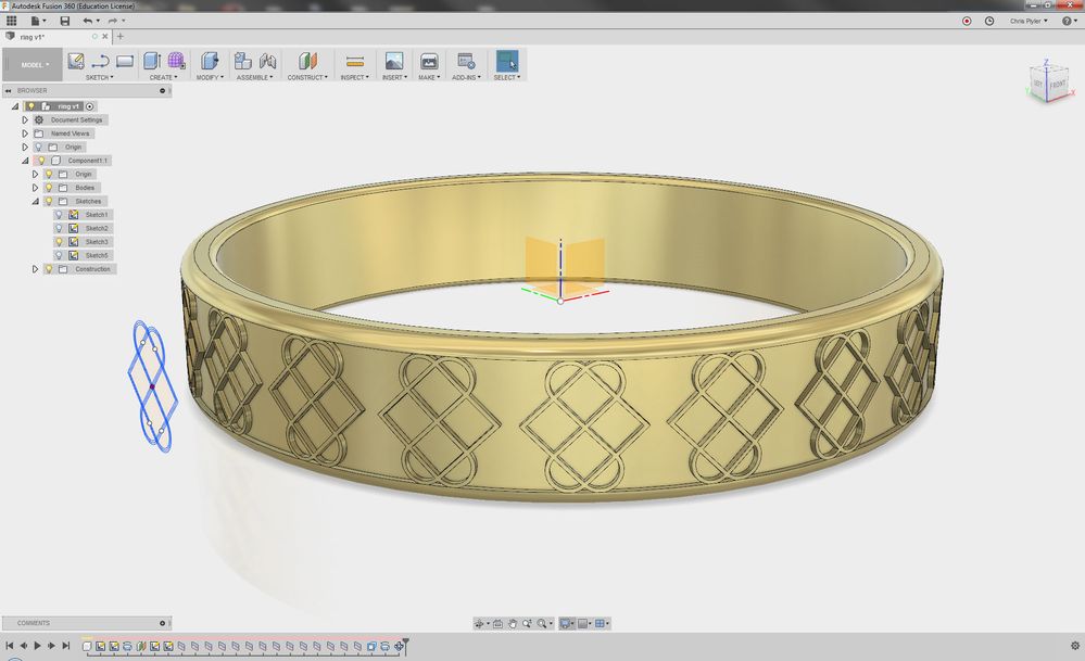 Ce qui distingue Fusion des autres logiciels gratuits pour la bijouterie, c’est la combinaison de deux approches dans un même outil. L’espace « Model » offre une modélisation paramétrique précise avec sketches et contraintes, comparable à FreeCAD mais avec une interface plus moderne. L’espace « Sculpt » (Form) permet de pousser, tirer et déformer des surfaces de subdivision — parfait pour les formes organiques d’un bijou art nouveau ou d’une branche entrelacée. La commande Pipe, par exemple, crée automatiquement des réseaux de filigrane à partir d’un maillage, et Refold Faces convertit un modèle plat en forme courbée pour des bagues ou des bracelets.