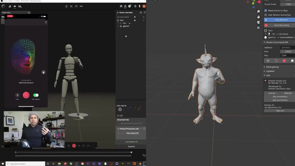 - Télécharger Rokoko Studio (gratuit, Mac/Windows)